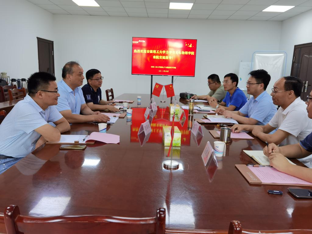 副院长(主持工作)圣宗强等一行4人前往安徽工业大学微电子与数据科学学院进行调研交流,微电子与数据科学学院杨二光副院长等5位相关负责人出席交流座谈会,双方深入探讨了学科建设、学位点建设、科普基地建设等方面的情况。