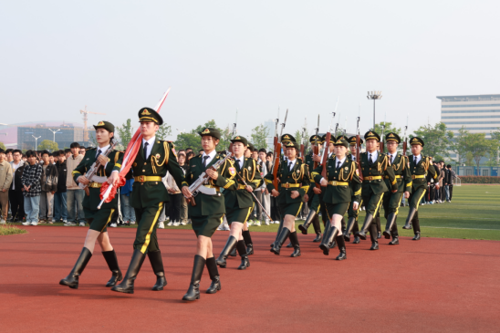 在至诚体育场隆重举行升旗仪式。学院领导班子、辅导员、教师代表和全体学生共1000余人参加。