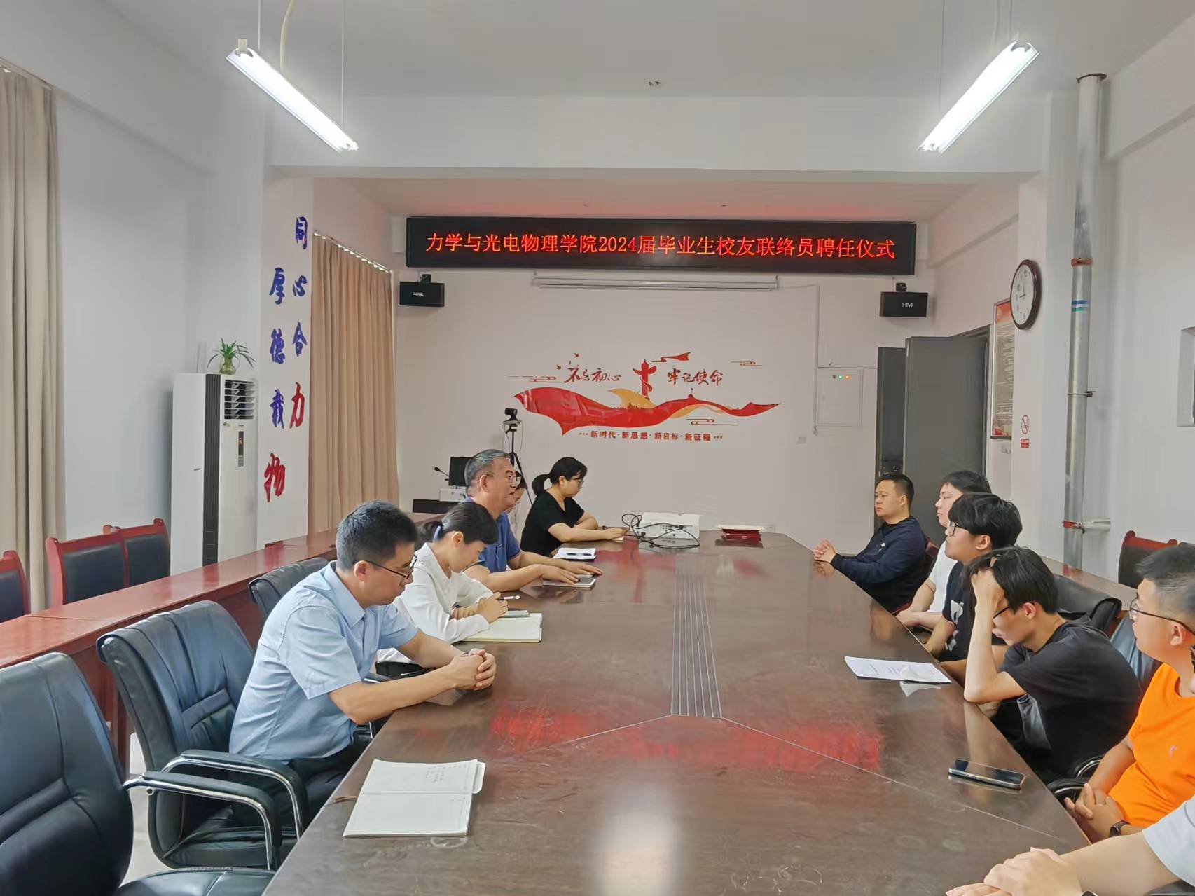 在明道楼A320会议室举行2024届毕业生校友联络员聘任仪式,学院领导班子、辅导员及毕业班校友联络员参会。