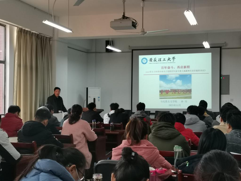 开班仪式结束后,马克思主义学院党委书记孙功以《百年奋斗 再启新程》为题为参训党员上专题党课,详细解读了党的百年奋斗取得的历史性成就、发生的历史性变革、四次伟大飞跃和十条历史经验。孙功指岀,各位师生党员要吃透《中共中央关于党的百年奋斗重大成就和历史经验的决议》的精神,特别是党员教师要将《决议》有机融入到课堂教学中去,传播好的党的思想,引导广大青年学生坚定不移跟党走。