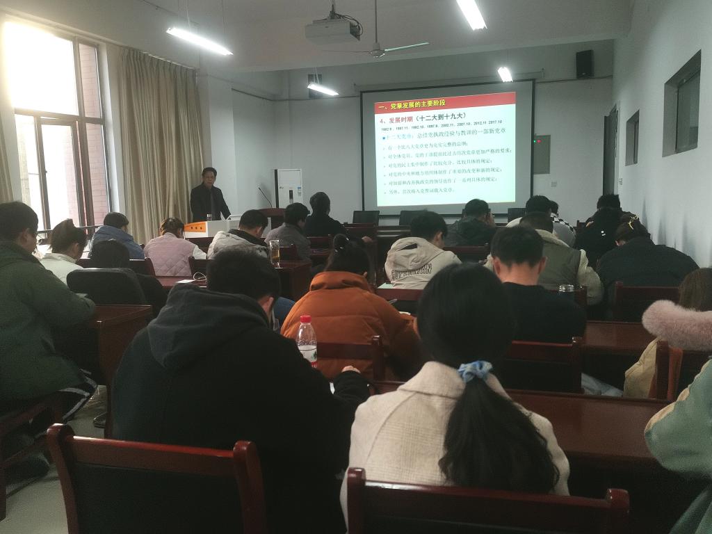 在学院楼A323报告厅开展党史学习教育,邀请校离退休处桂曙光处长讲授专题党课,学院师生党员八十余人参加了专题学习。